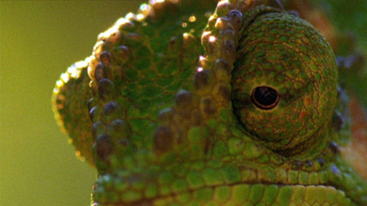 Baby chameleons emerge not as eggs, but as live young. The father has disappeared and this strategy means that the female can manage their care on her own: there were no eggs to guard and she was able to take her embryos with her to find food. She can only give birth to as many as she can carry inside her, but each is safer in there. Once born, there’s no childhood for these little lizards. The mother abandons them and they have to fend for themselves from the start.