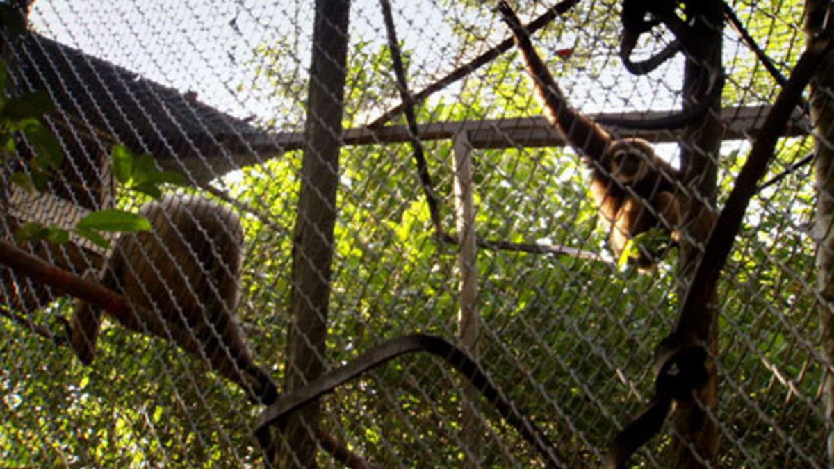 At Hampapak, the weekly delivery of bananas has arrived. Keeping the gibbons fed and watered twice a day is a costly and time-consuming operation. Chanee employs a team of 35 local villagers to do the job. Every week the animals get through 5,000kg of fruit.