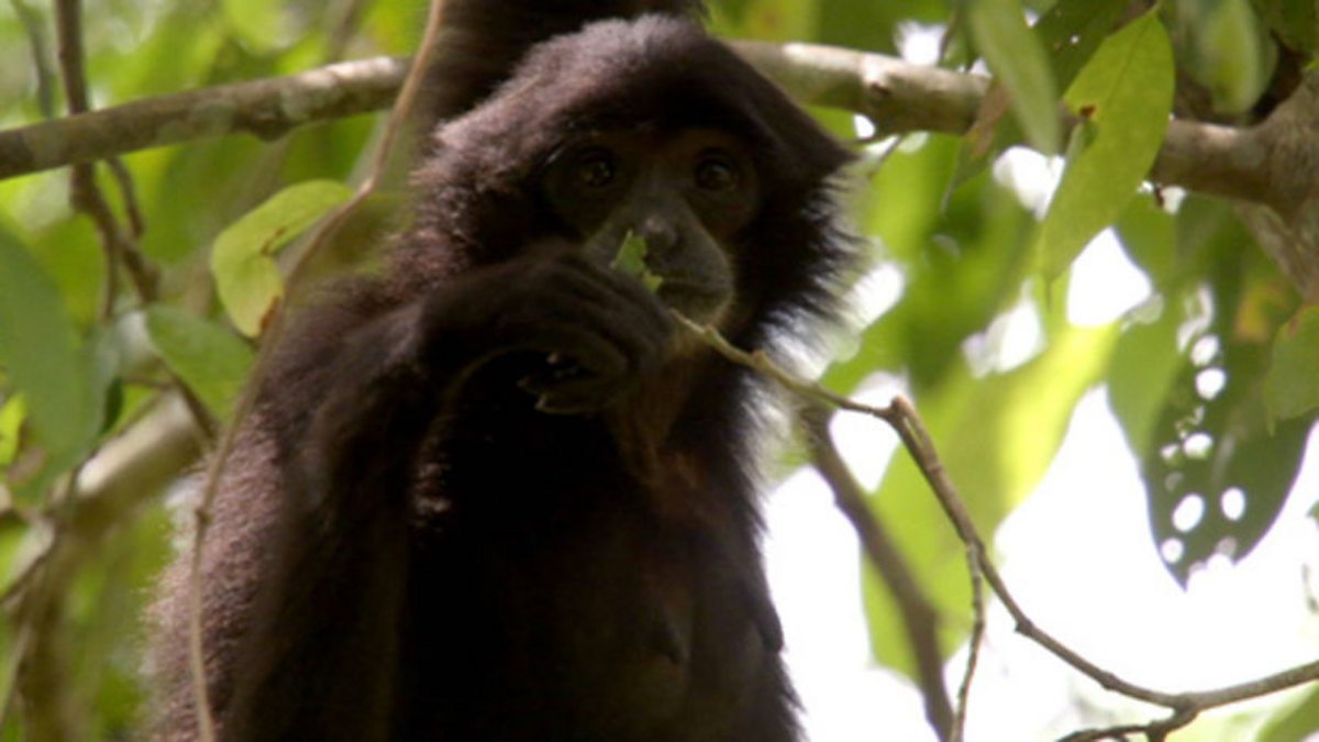 A rehabilitated siamang family is released back into the wild.