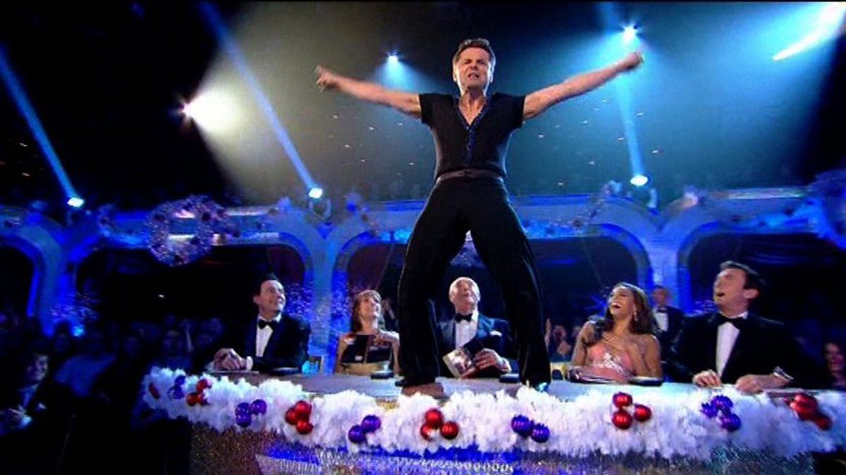 It's the finals of Strictly Come Dancing and everything rests on the final performances. Chris Hollins and his dance partner Ola Jordan perform a Showdance to "Do You Love Me" by The Contours.