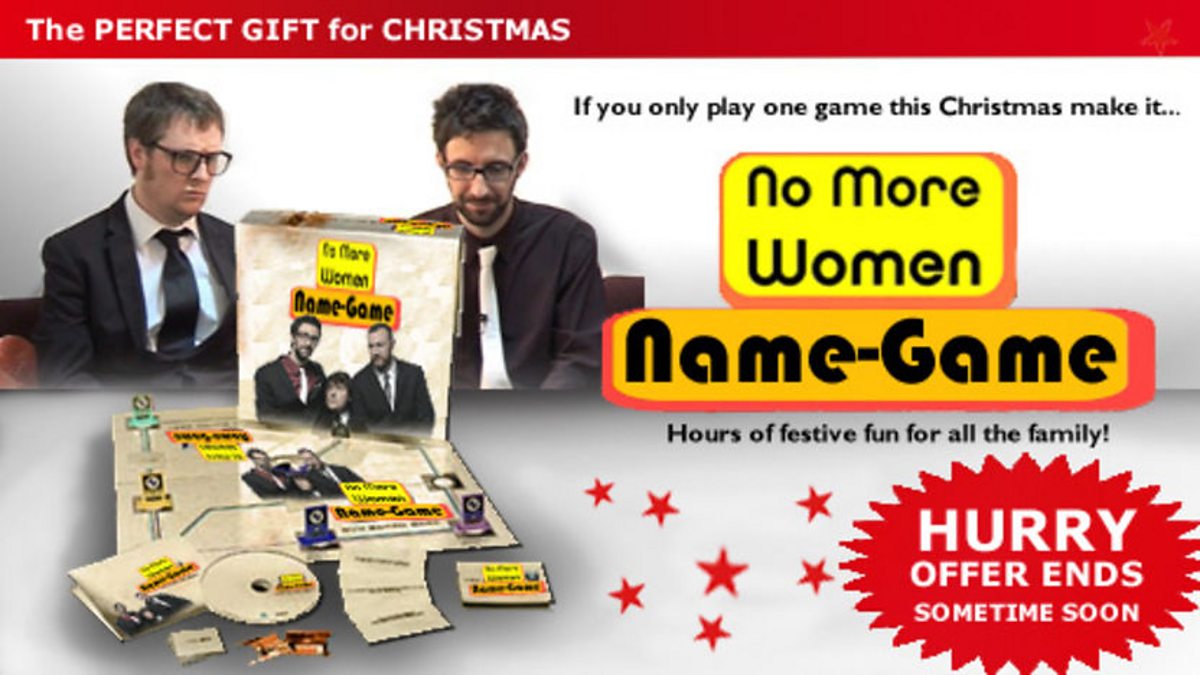 Filmed minutes before a particularly energetic episode of We Need Answers, Tim Key and Mark Watson resume their long-running series of No More Women: a name-game they invented some time ago, which is now creeping slowly across the country, like mist in the morning. It the perfect game to play after Christmas Dinner - literally everyone is doing it. Soon no-one will be able to do anything because it'll be everywhere (that goes for the mist or the all-consuming game - it's not a bad analogy). By the way, I'm Alex Horne and I'm in charge of the commentary and the analogies.