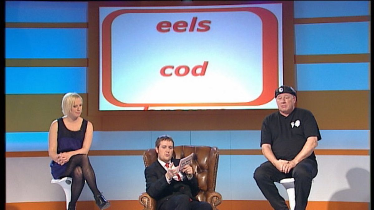 Neil Innes tries to answer a question on fish in Trading Places. He gets it wrong but Kirsten O'Brien has a go. Getting her Wonda & Wonga mixed up.