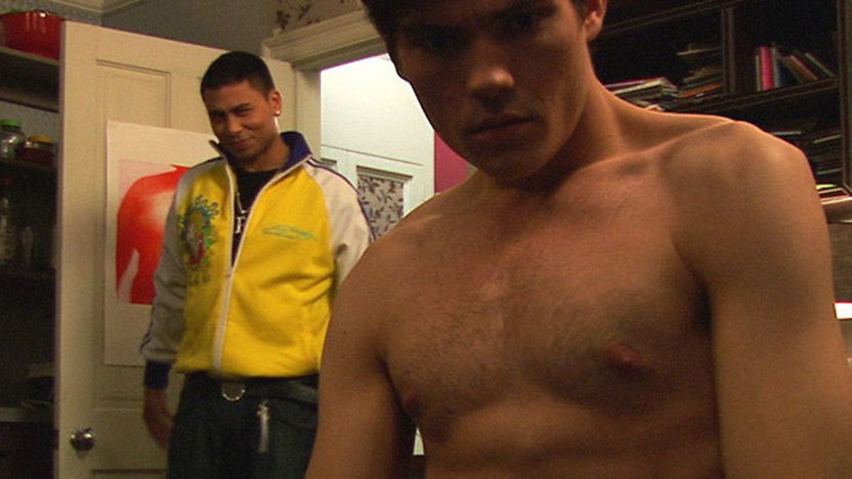 Fatboy finds Leon measuring his body against D'Angelo's in his How Does It Feel? video.