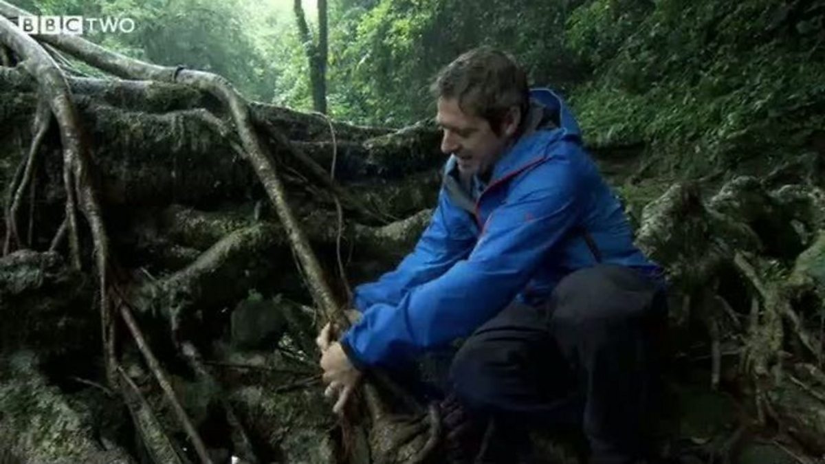 Professor Iain Stewart explores an amazing rubber bridge. The entire bridge is made from a rubber tree, carefully guided by the nearby villagers over time.