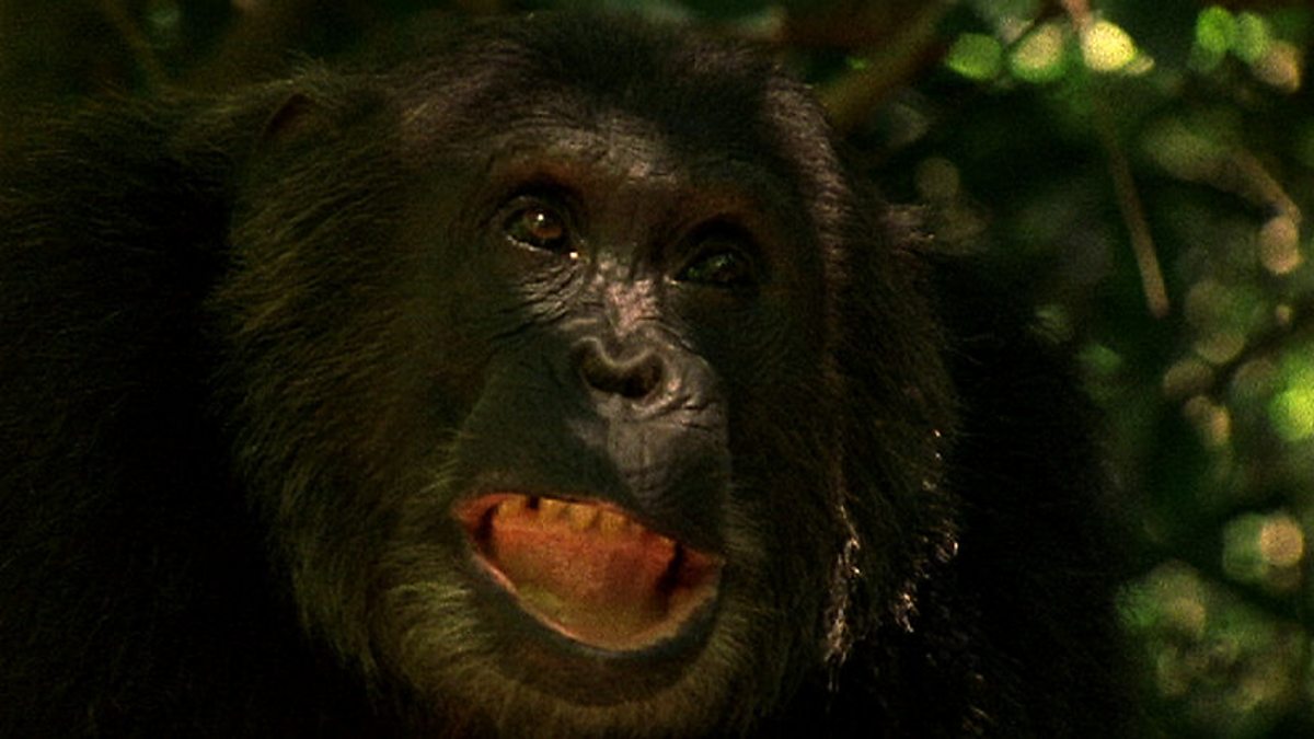 Male chimpanzees drum and call to each other around the valley as they prepare to go on a mission - a border patrol. They pound the huge buttress roots of trees like war drums. Even young Galahad is caught up in the excitement. They are heading to the southern border to protect their territory from neighbouring groups. When it comes to foreign policy all internal rivalries are forgotten. As they approach the boundary, some hangers-on have dropped back. From now on it‘s serious. This is an organised force with a specific goal - to keep strangers away from their patch. They scan the next valley - no man's land, where a small movement in the trees catches their eye. They move steadily and quietly. There’s a lone stranger around here somewhere - an easy target. He tries to escape, but it‘s too late - the patrol group is on to him. Their attack is unprovoked and vicious in the extreme, such is the power of 'gang' mentality. But who are we to judge such brutality? It seems that both humans and chimps share this darker side to their nature - this ability to consciously plan and execute a violent attack on another of their kind. Finally, they leave him to make his escape, but he’s so badly injured he may not survive. Back home, Frodo rests with his mother, nephew and youngest brother. He shows such tenderness with his family it’s hard to believe that he was capable of such aggression. Fortunately love is usually the more powerful force in our lives.