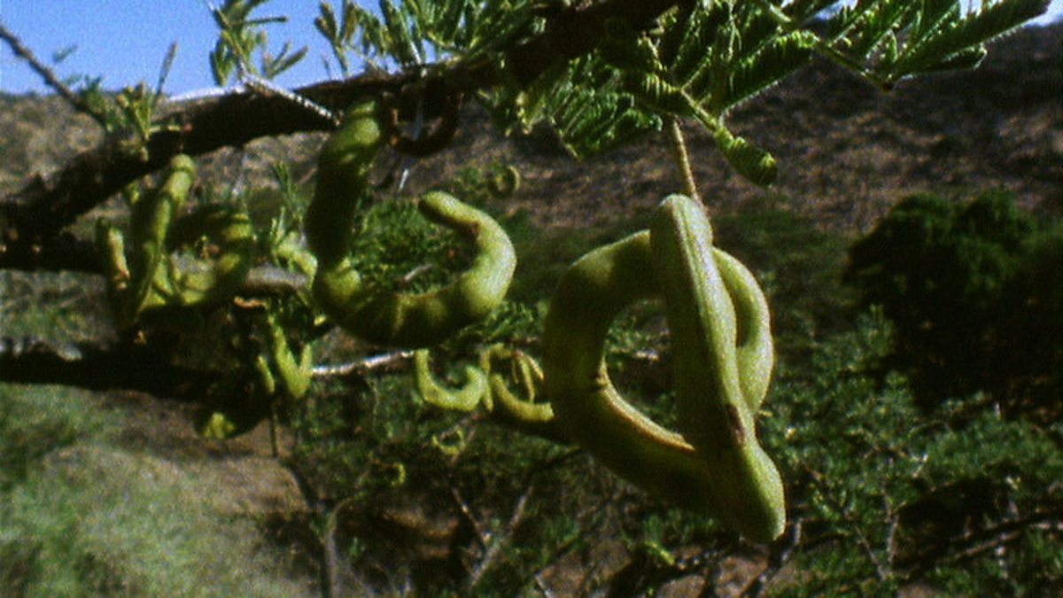 In Africa, elephants have become crucial partners for acacias. This may seem surprising as when food is short they are also great destroyers of acacias, using their great bulk and strength to knock the tree down to eat their branches. But without elephants some species of acacia would barely survive. Each year, acacias produce huge amounts of seed and lots of animals come to feed on them. From inside the pod, the seeds are also threatened by beetle grubs that will eat all the seeds, unless they are stopped. Monkeys, also come to eat the seeds, pods and all, chewing the whole lot very thoroughly. Elephants are different, they greatly relish the seed pods which are highly nutritious, but they don't chew their food into such a fine mash as monkeys do. Having fed on the acacia seed pods, the elephants move on, walking for several miles before they deposit the remains of their digested meal. The acacia seeds eaten by the elephant will have spent at least 24 hours inside its stomach. That hasn't harmed the seeds but it has killed the beetle grubs which threatened their survival in the pods. The seeds deposited in the elephant dung have a 90% chance of survival, however, seeds in pods that are left uneaten on the ground will nearly all be destroyed by beetle grubs. So Acacia seeds eaten by an elephant have not merely been transported, they have been saved from near-certain death.