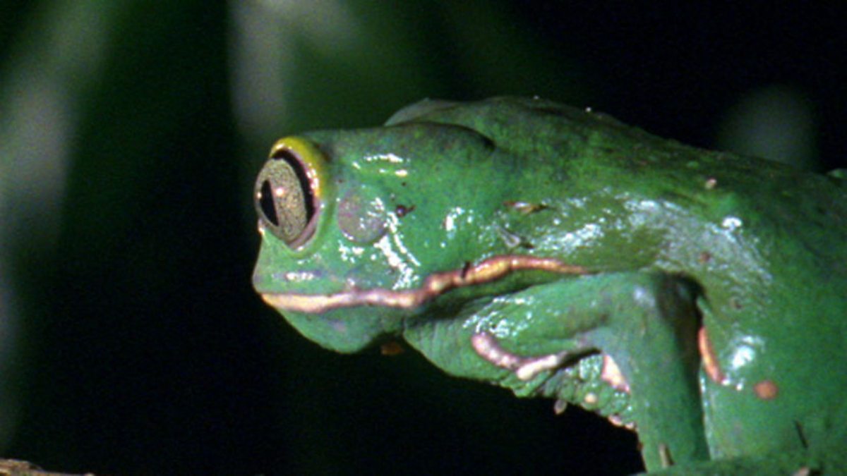 David Attenborough is in a boat listening to a nocturnal frog chorus. Amphibians were the first backboned animals to emerge on to land and there are now over 6,000 species of amphibians, with new ones constantly being discovered. We may not often see them, but during the breeding season we certainly hear the frogs and toads. But there are also newts, salamanders and caecilians. All amphibians have skin that they must keep moist if they are to survive.