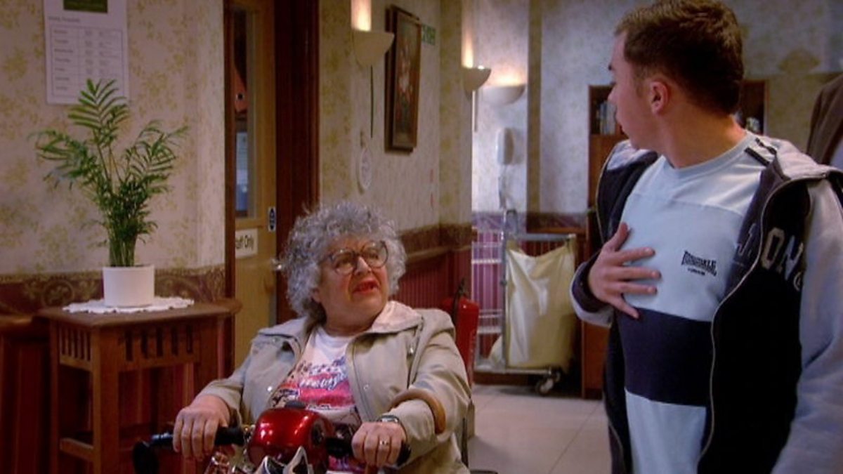 DK gets upstaged by a delinquent pensioner with a penchant for kissing strangers.