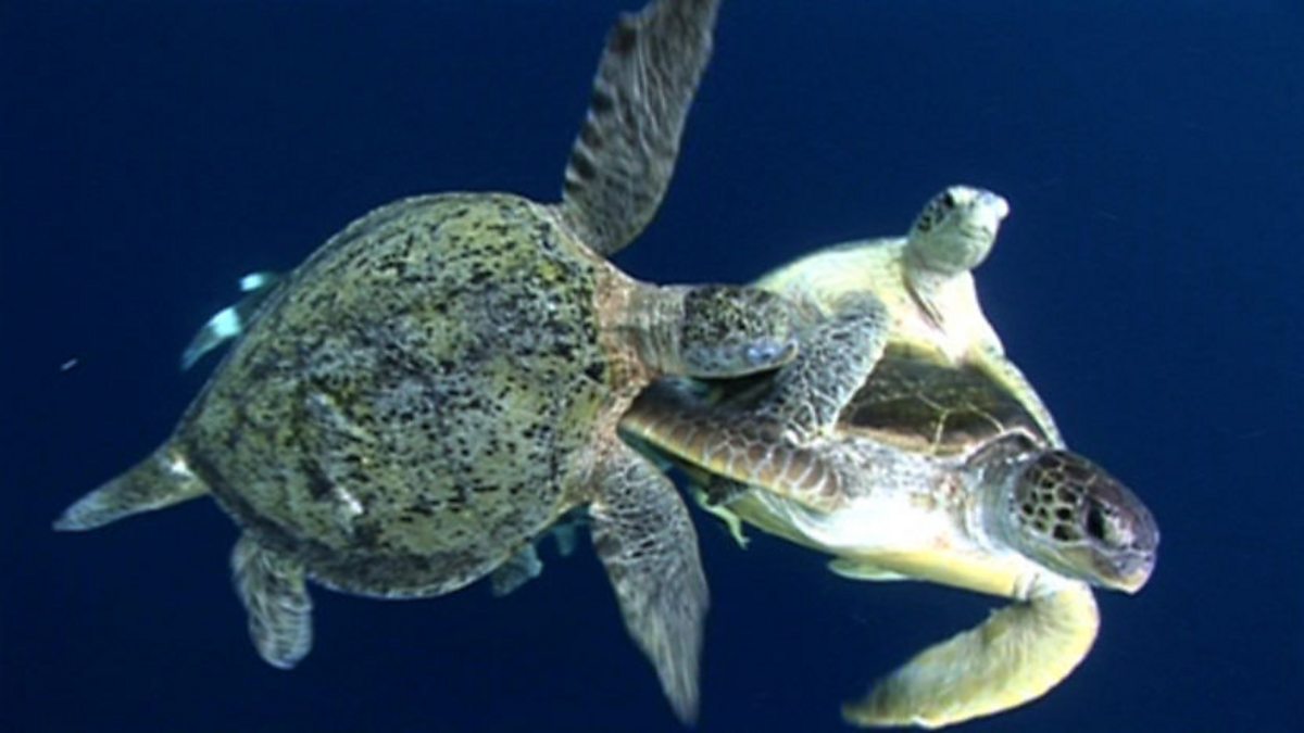 A pair of mating turtles comes under attack from a gang of jealous males.
