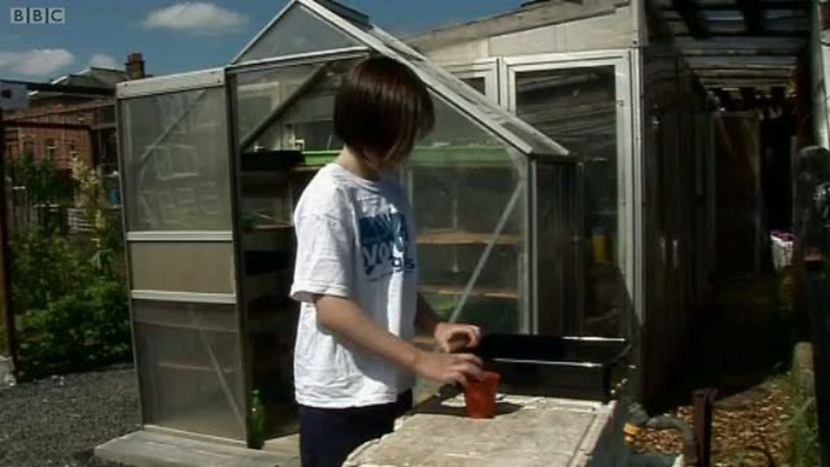 Pupils from Merrylee Primary School show how they grow fruit and vegetables on their allotment. They are visited by volunteers from the North Glasgow Community Food Initiative allotment.