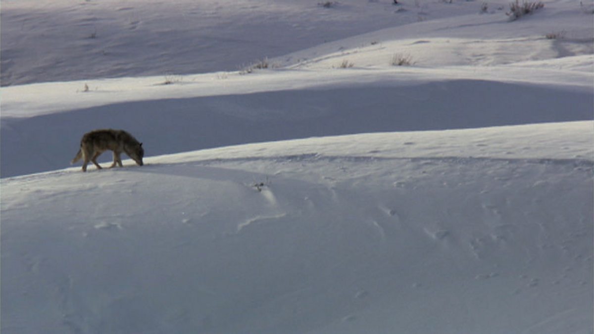 In February, almost everything in Yellowstone is on its last legs, but the Druid wolf pack is reaching peak condition. It’s now that the young females come into season and hanging back from the pack is a lone male wolf. He has no territory of his own but follows the pack scavenging from their successes. But right now food is not his priority. The young females won’t mate with the pack’s alpha male as he is their father. So the intruder could well be in with a chance, as long as the alpha doesn’t see him. Whilst the pack is distracted, one female sneaks away. She won’t give up the security of the pack to stay with the lone male, so they meet close by in secret. But the pack comes their way and the alpha male is on to the intruder. He won’t tolerate any other male in his territory, let alone alongside one of his females. When wolves mate, they become locked together for up to half an hour, the intruder can’t break free. The alpha male attacks him and finally the intruder is released and can run off. For now, the alpha male settles for seeing the intruder off and returns to reassert his position in the pack. The intruder retreats to a precarious life in the shadows. But whatever happens to him, so long as he was coupled for long enough he will have young brought up in the security of one of the strongest packs in Yellowstone.