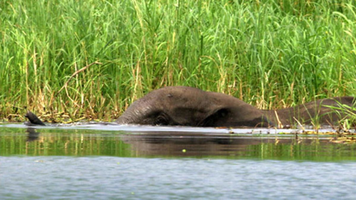 Elephants have adapted to Gabon's diverse range of habitats, even snorkelling across flooded channels and swamps. These inaccessible places may prove to be a refuge for the forest elephants as hunting is so difficult here.