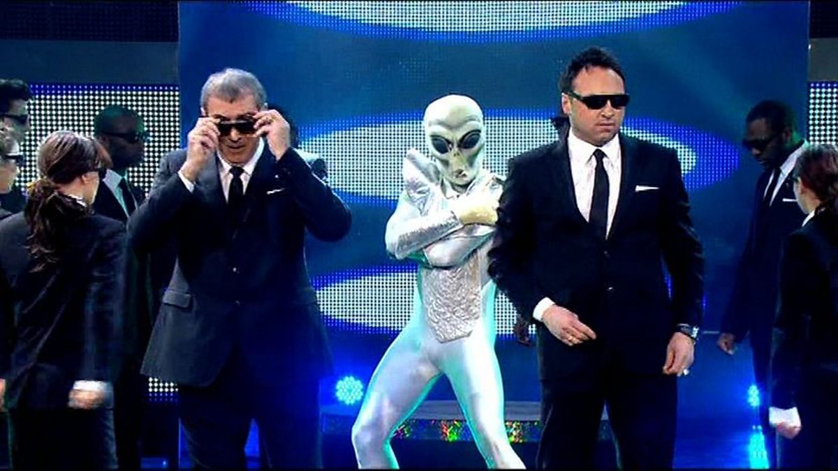 Footballers Peter Shilton and Jason Cundy tackle Men in Black for Sport Relief.
