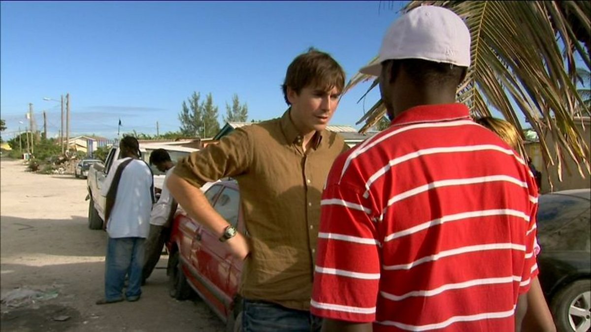 Presenter Simon Reeve meets some of the Haitian refugees living in the archipelago's slums.