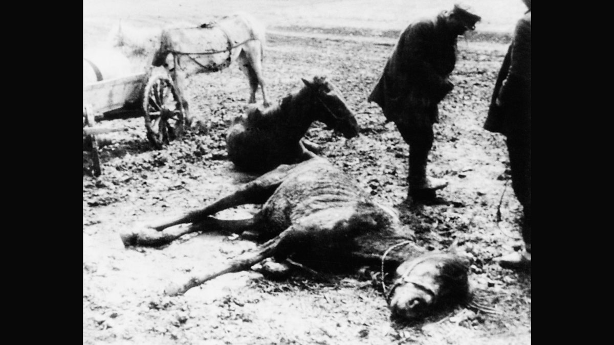 Photo: Dead and dying horses near a Belgorod collective farm during the man-made Holodomor famine in the Ukraine, former Soviet Union, 1934. (Hulton Archive/Getty Images)