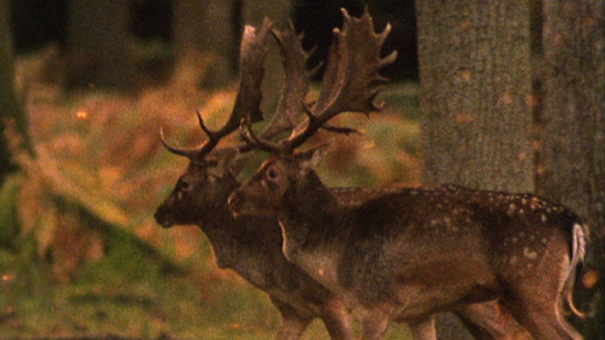 Over a thousand years ago, fallow deer were introduced to southern England by Norman settlers for hunting. By late autumn, when the fawns are well grown, the does come into season and the mature bucks start spoiling for a fight, roaring challenges to one another while pacing around. Each year the male's complete set of antlers is shed and replaced by a new set. This is a huge strain on the body of the buck. Strutting shoulder to shoulder, rival males size each other up. This parallel pacing stalls the need for physical contact but if they are equally matched they will engage in a gruelling clash of horns that can last for hours and may lead to death by injury or sheer exhaustion. More usually though, all that is needed is a harmless brief encounter to resolve the dispute. The defeated male will then display his frustration by calling and scuffing at the ground with his hooves. The winner will mate with the does.