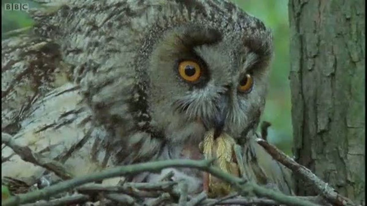 At twilight, a long-eared owl quarters a meadow in search of prey, its eyes and ears tuned to the slightest movement or sound. His mate has commandeered an old crow’s nest, high in a thorn tree. Exposed to the weather, she must sit tight to protect her young and wait for her partner to return with food. They specialise in hunting small mammals or birds and are no threat to a farmers' living. Unfortunately, their habit of nesting in old crows' nests can put them in mortal danger from the farmer's gun as shooting crows to safeguard lambs is a regular activity on most sheep farms. Crows are wary birds so one of the most effective ways of controlling their numbers is to destroy their nests. Luckily for the long-eared family on this farm, farmers in the Vale make sure that any crow’s nest is owl free.
