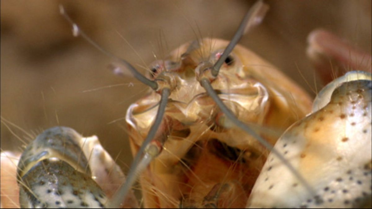 Hiding under a rock is a pistol shrimp, and it packs a mighty weapon. The approaching crab is heading into trouble as the shrimp is ready for a fight. At first sight it looks like the shrimp punches the intruder with its claw, but in fact something much stranger is going on. His weapon isn't actually the claw itself, it's an amazing invisible force. The claw snapping shut happens so fast it causes a high velocity water jet which shoots forwards at almost 60 miles an hour - fast enough to vaporise the water and form a bubble. But this is no ordinary bubble. The temperature inside reaches over 4000 degrees and as the bubble collapses this energy is released like a super-heated shockwave, stunning and killing its prey.