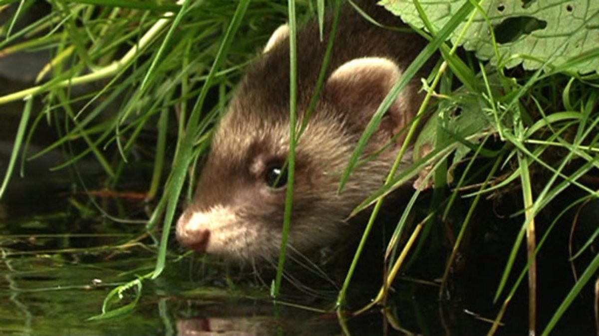 Simon King goes to a public hide at College Lake in Buckinghamshire to try to film wild polecats. They've been reported to drink from the pond there. After a few false alarms he finally sees one⦠then a second. Simon is delighted and comments 'you wait 46 years to see a polecat then two turn up at once!' One polecat eats caterpillars off the nettles. Simon has seen these ones because there is a den nearby with well-grown kits. The chances of seeing them elsewhere is tiny.