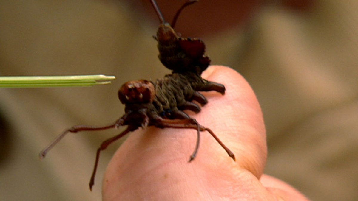 Bill Oddie has found something that looks like a weird little crustacean - but it is actually a caterpillar. It looks rather like a lobster, so has been named the lobster moth. Its appearance helps it avoid being eaten. From one end it looks like an alien creature rearing up at you. From the other it looks like a spider. And if you provoke it, it will squirt formic acid at you. It is a woodland species.