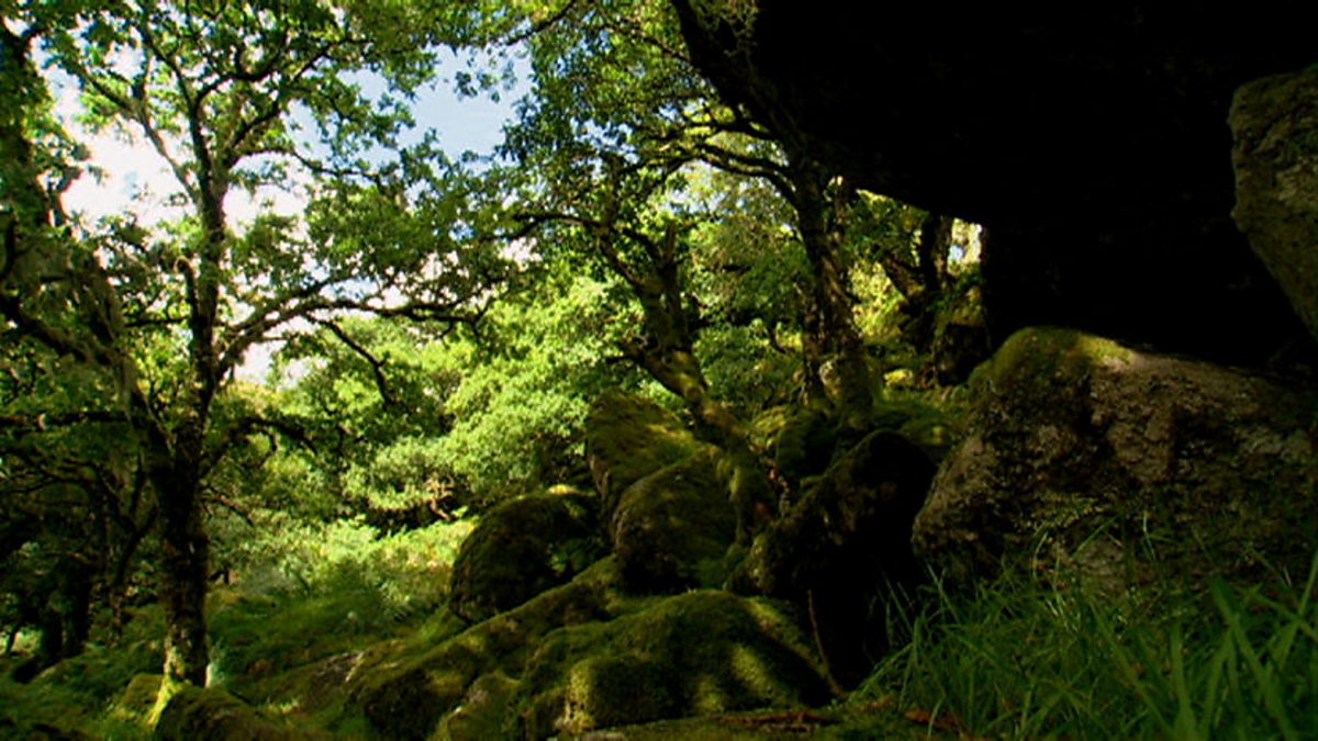 Dartmoor isn't just moorland, it also has some eerie and beautiful woodlands, where the rocks and wonderfully shaped trees are covered in moss and lichens and epiphytes that live entirely on the trees. There are many legends about these areas. The Druids were reputed to carry out their rituals here, and Bill remarks that it feels like it would be a great place for the Beast of Dartmoor to hide out.
