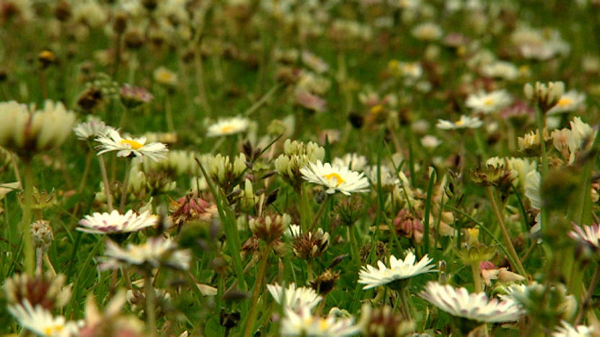 Bill Oddie visits the habitat for which the Outer Hebrides is famous - the machair. It's a Gaelic word that means 'extensive low-lying fertile plain'. Machair is unique - it is found nowhere else in the world. It is not a natural landscape - it has been created by man through farming. But fortunately, it's what Bill calls 'old fashioned farming' - which makes it perfect for birds and flowers. There are carpets of yellow and white flowers - buttercups, daisies and Bill's favourite plant in the area, cottongrass. The cottongrass is at its best now, looking like cotton wool on a stalk. Field pansies are the wild version of the ones you get in your garden. Bees are busy on the machair - and they are all types of bumblebee. It's a botanical wonderland, and also a nesting place for corncrakes.