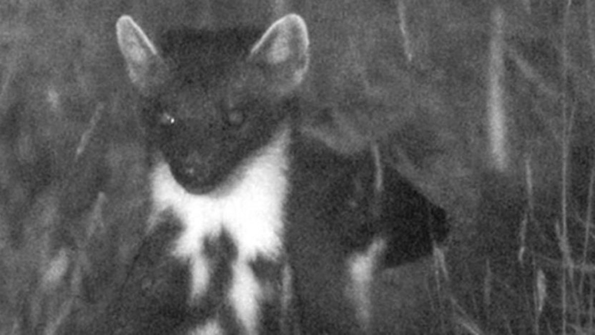 At about 11.30pm a pine marten family is caught on the infra-red cameras. It’s a female followed by her kits and the first time a family group had come down to the observation centre in 2008. The family began busiiy feeding on peanuts, but then started to look for more natural food in the long grass, such as moths, using their keen eyes and ears to pinpoint their prey. One of the youngsters finds an egg and puts in a huge effort to try and crack the shell, but it's just not strong enough and has to give up in the end. Standing on her hind legs, the female looks out for any danger which may be around, and after a short while the family leaves the main observation area. The Springwatch team were prepared for this and had bugged large areas of the forest with cameras, which is where the family next appeared, though they seem quite taken with the infra-red lights!