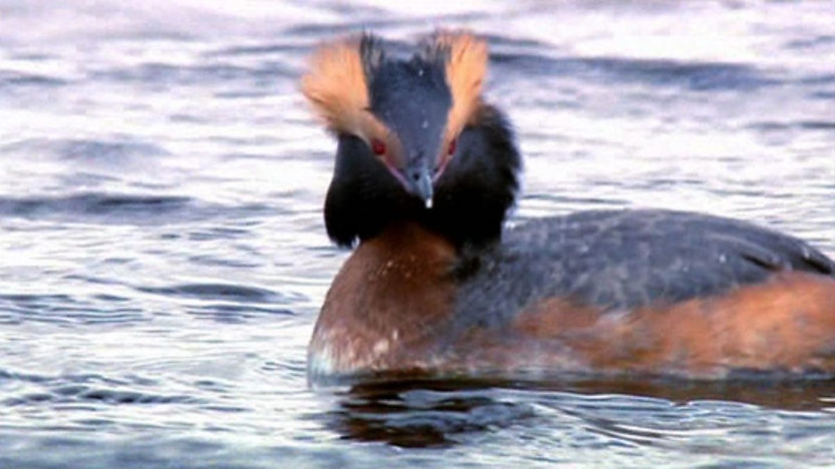 Stuart Benn works for the RSPB as a senior conservation officer looking after the Loch Ruthven Reserve in Scotland. The real jewel here in the spring and summer is the Slavonian grebe. There are 20 of the national population of 40 pairs breeding here. There are roughly 12 golden eagles for every Slavonian grebe - which makes them very rare visitors to Scotland. The grebes perform a penguin dance for courtship, where they pick up bits of weed in their beaks and swim in parallel with each other, then stand up in the water, bellies facing each other. Once a bond has been formed they will continue to swim close to one another. Any visitor to loch Ruthven between March and September can't fail to see a Slavonian grebe.