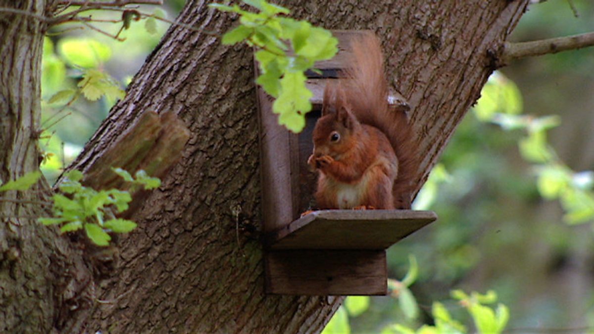 There’s are only red squirrels up in this part of the world in the north east - but the greys are coming. Everybody thinks that grey squirrels are pushing out reds but that isn’t strictly speaking true. They don’t attack or harass reds, but they do compete for the food and because they’re bigger and more robust they tend to win out. That’s why there are special feeders here which are supposedly grey-proof. Bill Oddie watches a red squirrel at one of the special feeders. And in case you’re wondering, red squirrel was number one - the animal that viewers most wanted to see.