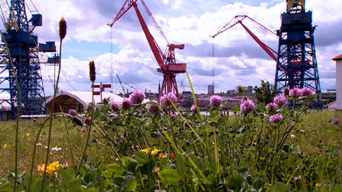 On the edge of an industrial estate is a wildflower meadow – or is it a gardener’s nightmare? One man’s weeds are another man’s wildflowers - and Bill Oddie is that man. This is a botanical wonderland not a waste ground. This is right by the Tyne and it’s called Wallsend. Would you believe the wall in question is Hadrian’s Wall? In fact this was the site of a very big Roman Fort and it’s covered in wild flowers. Have a close look and they’re very delicate and very pretty some of these. Hop trefoil, bird's foot trefoil and common daisy. For many centuries the daisy was quite rightly considered to be one of the classic pretty flowers. Daisy actually comes from 'day’s eye', meaning flower of the dawn, the one that cheers you up when you wake up. And we all know dandelion seeds are carried on the wind, whilst cleavers are carried on people and animals as they travel. And nobody travelled more than the Romans, carrying seeds with them. So what did the Romans ever do for us? Well they gave us weeds - or wild flower gardens, as Bill prefers to think of them.