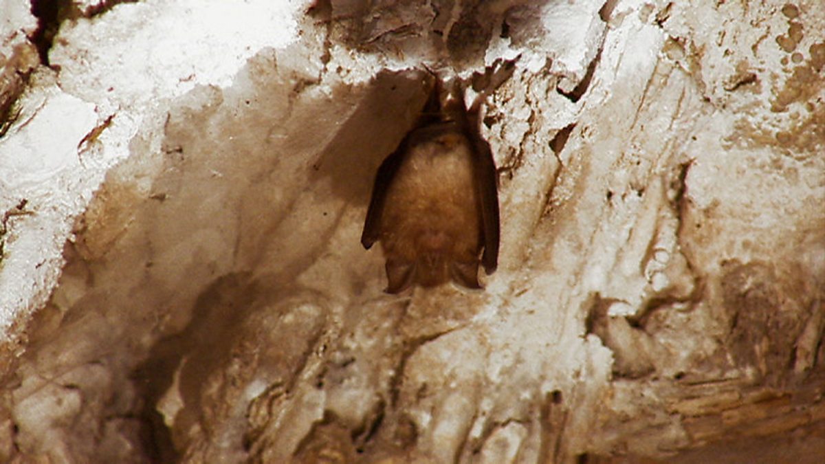 Cave spiders - a good name, but it's not what Bill Oddie is looking for. He's here looking for bats. County Kerry has eight different species. He won't be able to touch them because you need a special licence to handle bats, but somewhere down in in the crypt of a ruined friary is a man who does: Conor Kelleher. Bill and Connor find some bats. One of the smaller species, a very rare type, is called a whiskered bat and has very, very dark features. The first person who identified it decided he had a very furry face but all bats have furry faces – there are no whiskers as such. Bats eat a fantastic amount of insect prey in a night - usually they can increase their body weight by about 50 per cent. That equates to about 3,500 midges every night. They're nature's insecticide. They're so tiny they can squeeze into cracks and crevices in peoples roofs and they usually live underneath the tiles and most people don't even know they have bats. You won't find them in places full of cobwebs, because they're very clean. They don't like cobwebs, so it's a good sign if you've got bats in your house - it means you've got a nice clean house. The long-eared bat is a gleaning species. That means that it's not picking prey out of the night sky as such like other species, it actually goes in to the canopy of trees and it picks the insects and the spiders off the leaves of trees, so it can actually hover like a little hummingbird. This guy's actually one of the whispering bats. While other bats are going out there shouting as loud as they can - maybe up to 110 decibels, as loud as a jack hammer or a jet taking off - this little fella has learned that moths can hear the other bats coming because they are so loud. So he tries to sneak up on the moth and he whispers his echolocation calls. Thus he needs huge ears to be able to hear the echoes of whispers. The lesser horseshoe bat actually shouts his noises out through his nose at a much higher frequency. He uses his nose like a little trumpet. This bat is known as the bat of the aristocracy because they used to live in the big houses in Ireland, but unfortunately a lot of these houses have now been destroyed. The bats have gone down the property market you could say, since they're now found in places like farm buildings. That one is grooming himself with his back foot - using it like a comb to comb his little belly.
