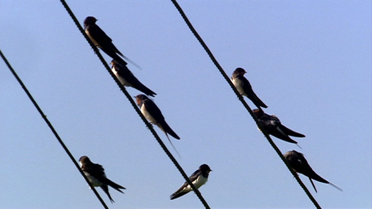 It's September 20th, but there are still a surprising number of swallows and house martins around. But Bill Oddie's surprise merely gives away that he's a Southerner. He lives in London and these last few days over Hampstead Heath he's been seeing swallows and martins belting south, so wrongly assumed they must be from the north where it was getting chilly. However, it's actually warmer here than it was in London. And in fact when you think about it from a bird's point of view being a few hundred miles further north makes very little difference because once they decide to go they're pretty quick about it. Birds of this size probably fly at something like 40- 50 miles an hour, maybe get a following wind, and think nothing of flying for several hours a day. So, 200 miles a day would be nothing: set off from here, stop around Manchester, Birmingham, nice reservoir, feed up a bit more, carry on and be out over the English channel within a day or two and over to the continent, off for the big journey down to Africa. I'm often asked what's my favourite bird and I have to say swallow, because they look good close up - little face, great big eyes. little bib, almost smiling little mouth and they look fantastic when they're flying as they suddenly turn into something positively aerodynamic. It's also what they represent - the miracle of migration and nobody really knows exactly what triggers them to go, it must be a fall in temperature, diminishing light, but there'll be something, you know one morning they have a chat to one another and say 'time to go South mate' and 'yeah I agree let's be off.' Here today gone tomorrow.