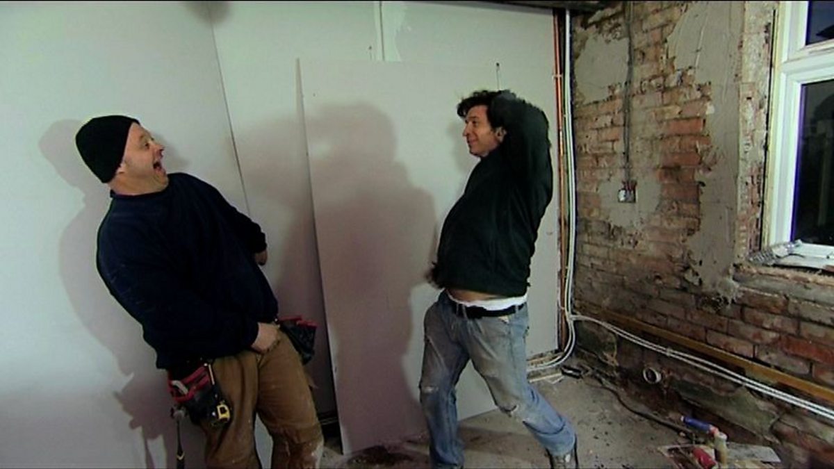 Nick and the DIYSOS team keep their spirits up by dancing to eighties classic Never Gonna Give You Up.