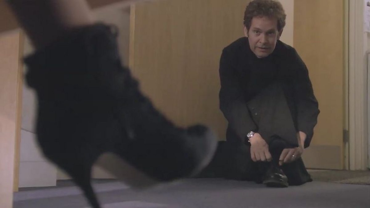 Whilst suffering a crisis of faith, Adam gives an assembly at the school. After reacting badly to a jibe from one of the kids, Adam considers moving into teaching, but is soon put in his place by Ellie (Lucy Liemann)- who is wearing a very sexy pair of shoes.