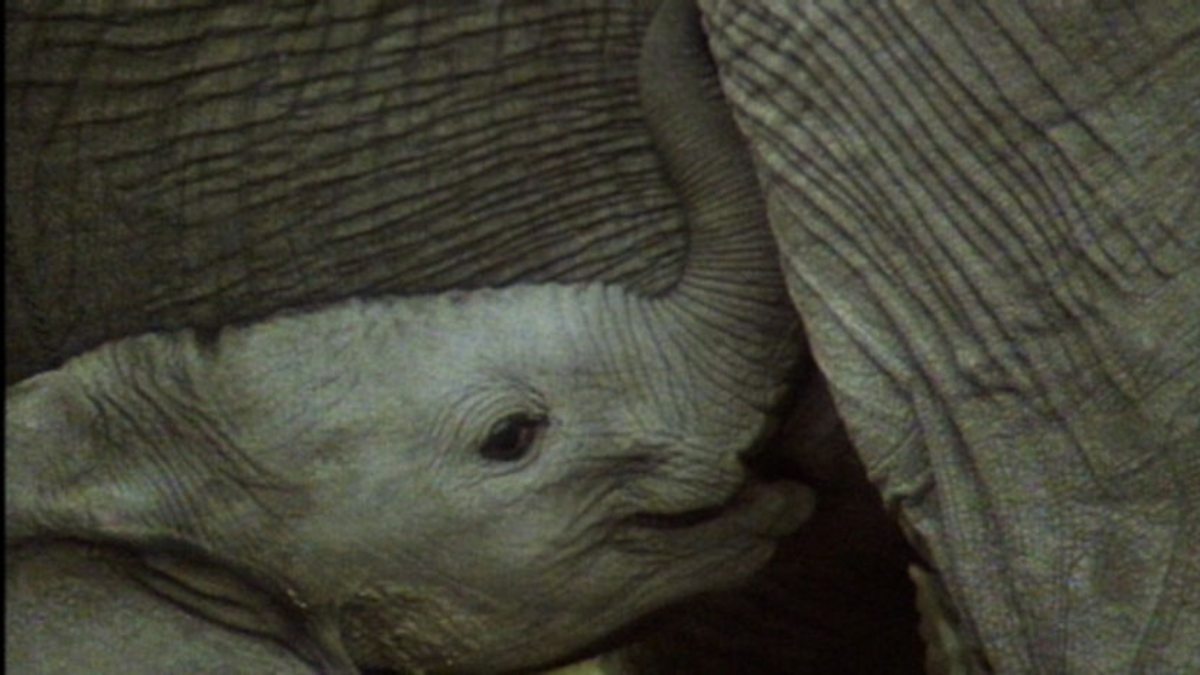 It's soon obvious that it's Ely's unusually large size that has resulted in him having bent legs. But he makes heroic efforts to straighten them, though it obviously leaves him exhausted. Finally, it pays off - he stands up and is able to reach his mother's teats and get a proper feed at last.