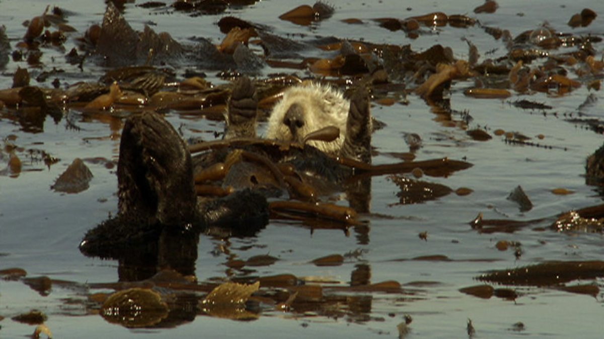 A kelp wrap helps sea otters sunbathe without being washed out to sea.