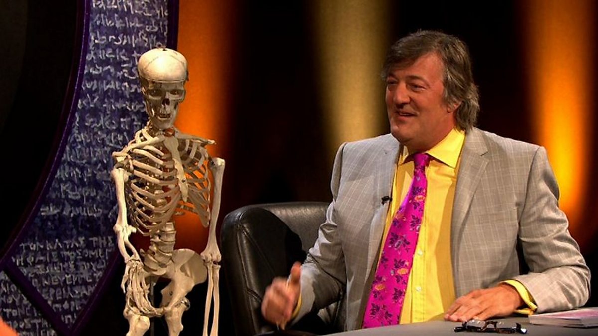 Alan chooses his moment carefully when he gooses Stephen with a skeleton's hand...but how long can he get away with it?