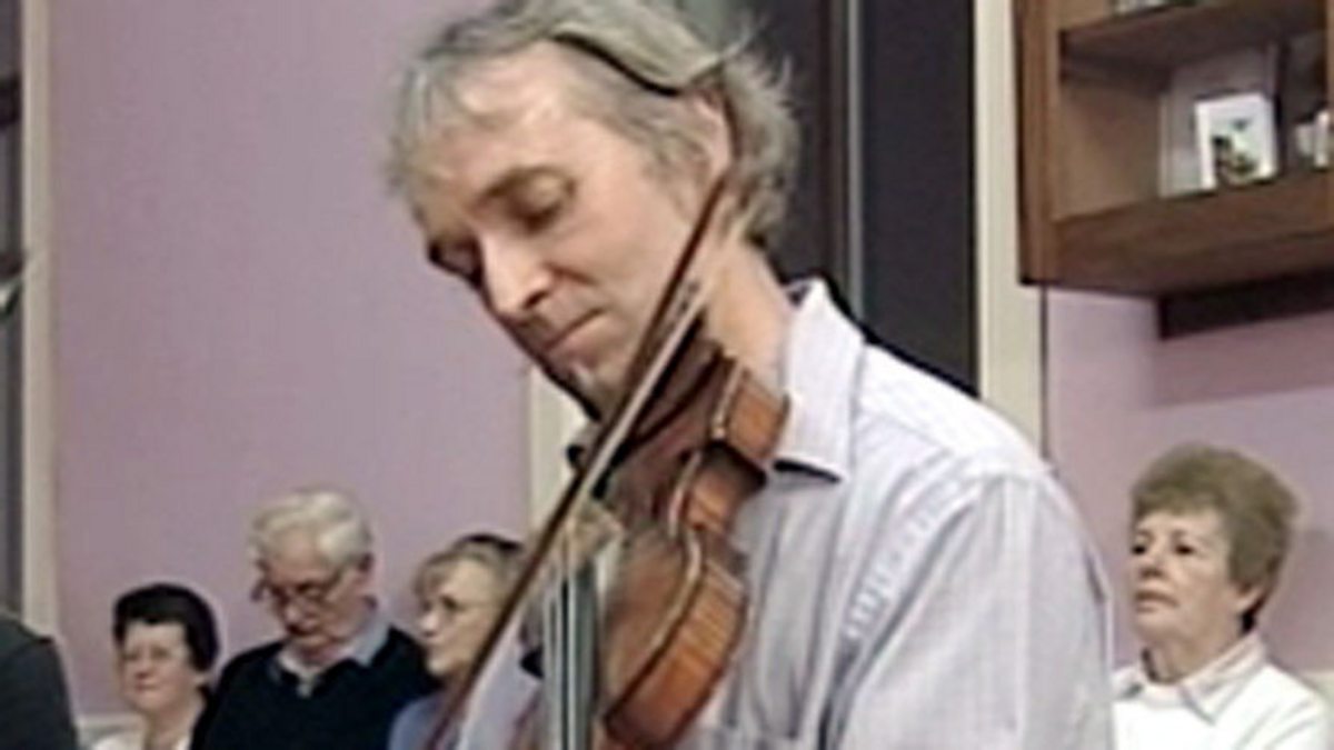 At Bobby Acheson’s house Willie Drennan recalls local woman, Agnes Brown presenting him with her great grandmother’s fiddle whilst at a soiree in Cairncastle - and he plays a new tune called ‘Ower the fields to Tildarg’. (Broadcast: 13 Mar 2005)