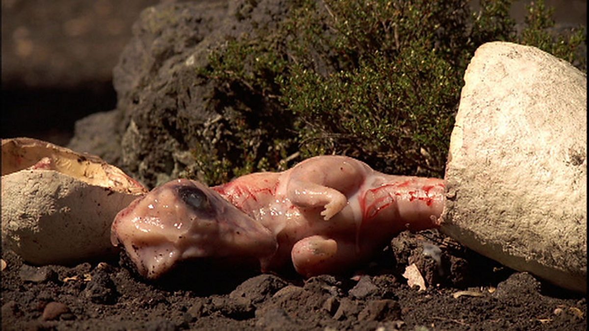 It is the late Cretaceous period and Tyrannosaurus rex is the top predator; but an abandoned Tyrannosaurus nest provides a feast for burrowing Didelphodons.
