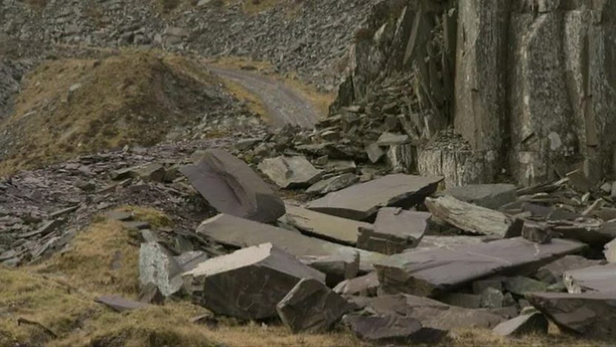 Yn 1890 roedd nifer o ddynion yn Eryri yn gweithio yn y chwareli llechi. Roedd darnau mawr o graig yn cael eu ffrwydro allan o ochrau’r mynyddoedd. Roedden nhw wedyn yn cael eu hollti’n llechi ac yn cael eu hallforio o gwmpas y byd i gael eu defnyddio fel defnyddiau adeiladu.