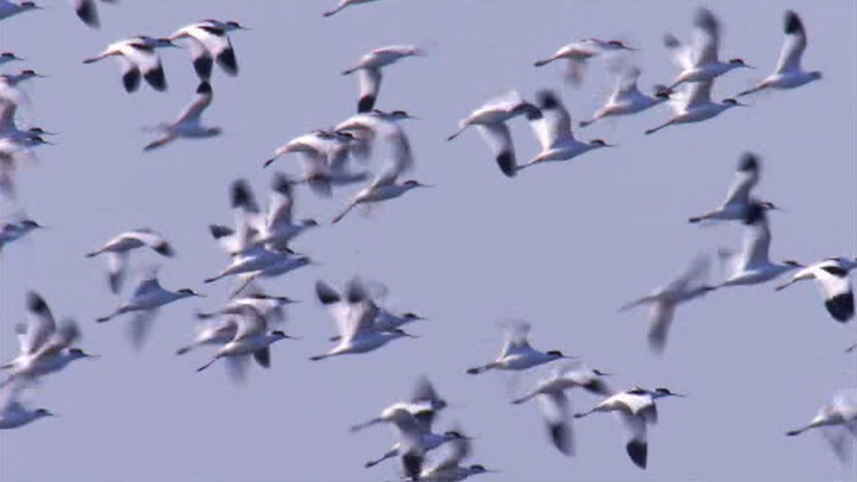 Chris Packham admires Brownsea's ornithological opt-art created by flocking birds.