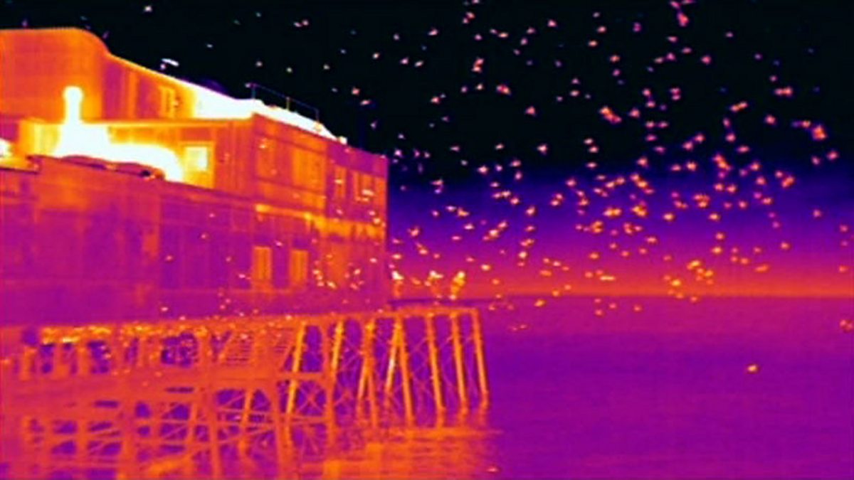 Thermal images show how starlings create pockets of warm air to roost in.