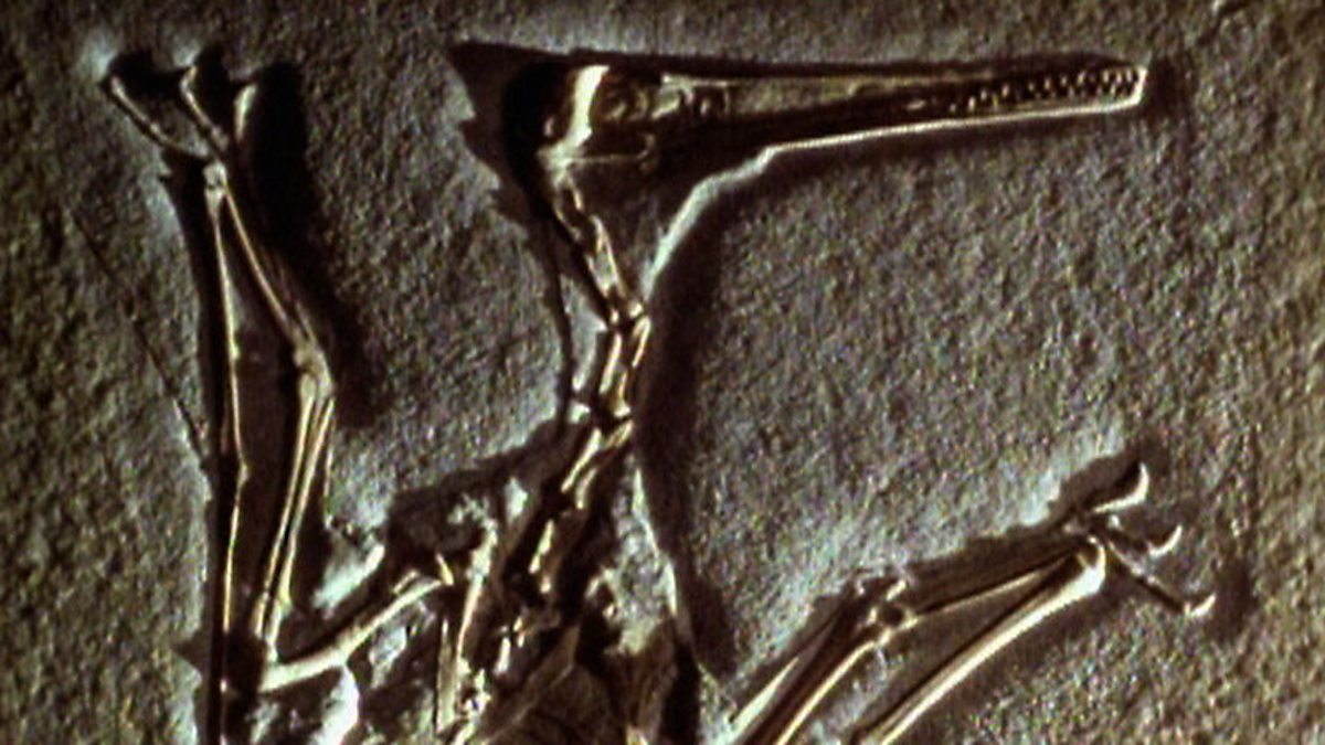 Pterosaurs existed for 170 million years. There were pterosaurs of all sizes. Early ones were about the size of sparrows. Later they got bigger and bigger. They fed on insects, fish and one may even have been a filter feeder. Some bizarre pterosaurs have come from Brazil, including one with an extraordinary flange on its bill. David Attenborough talks to Peter Wellnhofer about this pterosaur's anatomy. The flange was no use in flight, but could have stabilised the skull in the water.