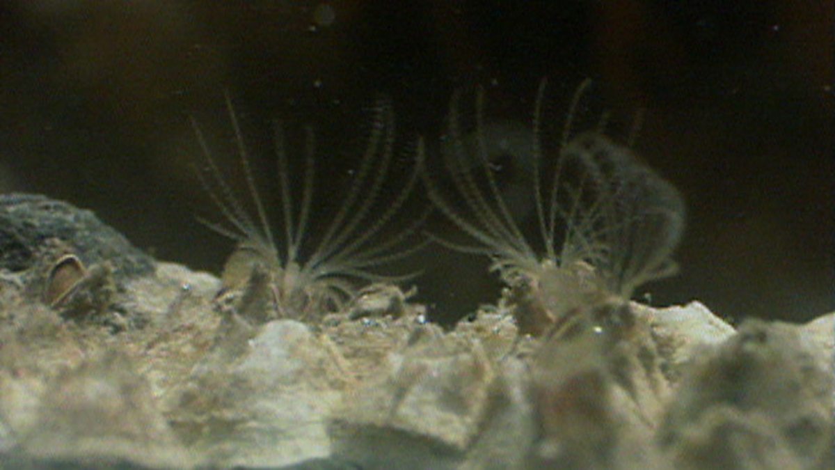 Barnacles catch food by sweeping their legs through the water. But the long hooked things probing around are penises that are depositing sperm into neighbours. As barnacles are male and female at the same time, there's a good chance of fertilisation and the production of millions of larvae that are released into the plankton. If they survive long enough, they might find a bare surface to settle on, even a recent wreck. Once they are cemented to the deck there's no second chance to change position as they grow into mini-adults. Although their bodies are protected by hard plates, they are still vulnerable. The shanny is one of the few fish adapted to feed on barnacles, particularly their exposed legs. Any vacant spaces will soon be filled by more barnacles.