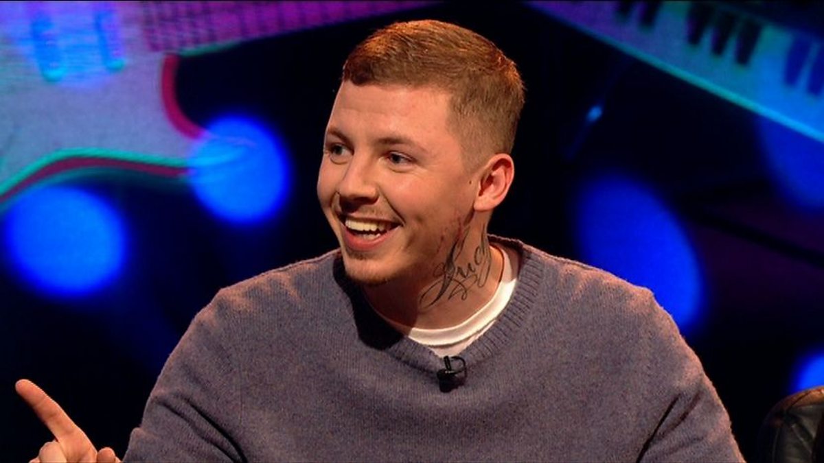 After teasing him about his stabbing, Frankie Boyle asks Professor Green to give his response in the form of a rap.