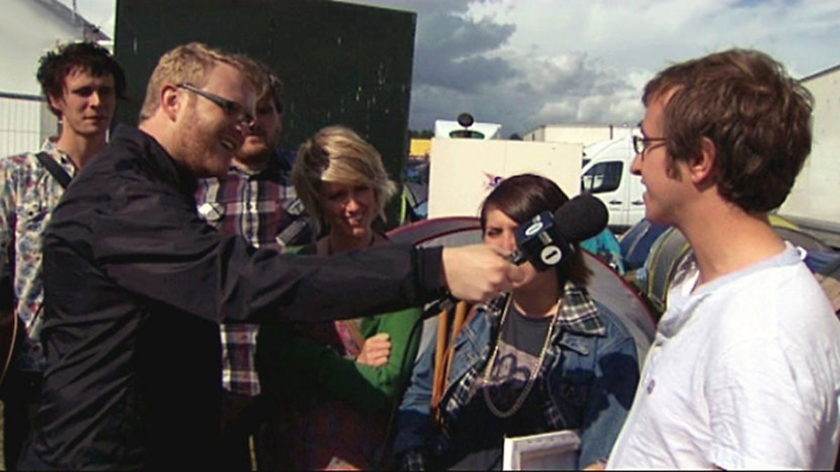Hugh Stephens talks to newcomer Milk White Teeth backstage at the BBC Introducing tent at Reading 2009.