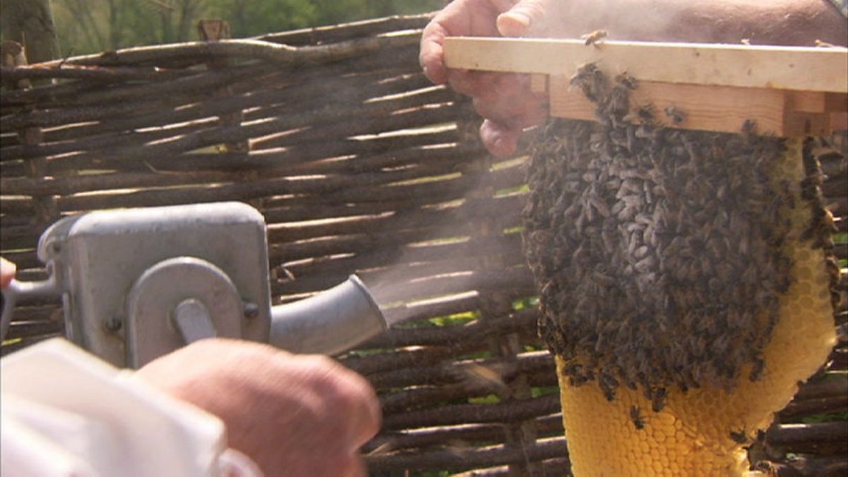The top-bar hive is probably the oldest system of beekeeping in the world going back several thousand years. Neil, Carol’s husband, decided this is the method of beekeeping he wants to pursue. Phil Chandler, the bee expert, helps him set-up his new hive of honey bees.