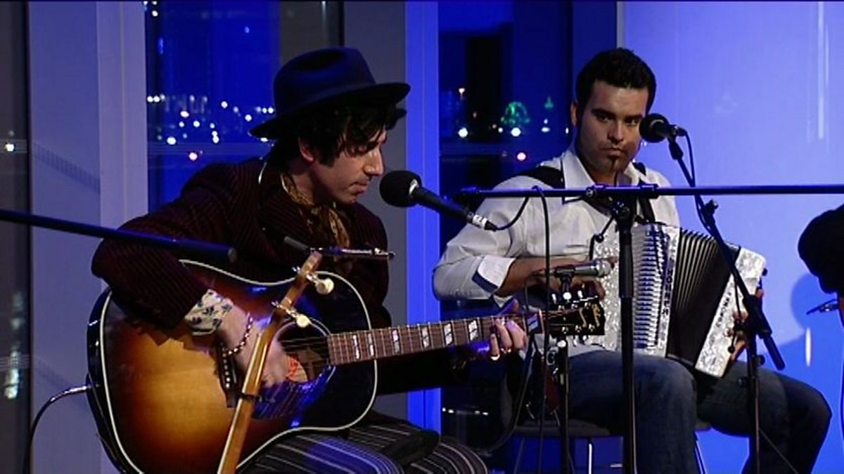 Watch Pete Molinari sing about a Romance in Catania with a little help from the other performers on stage in the foyer of BBC Scotland in Glasgow.