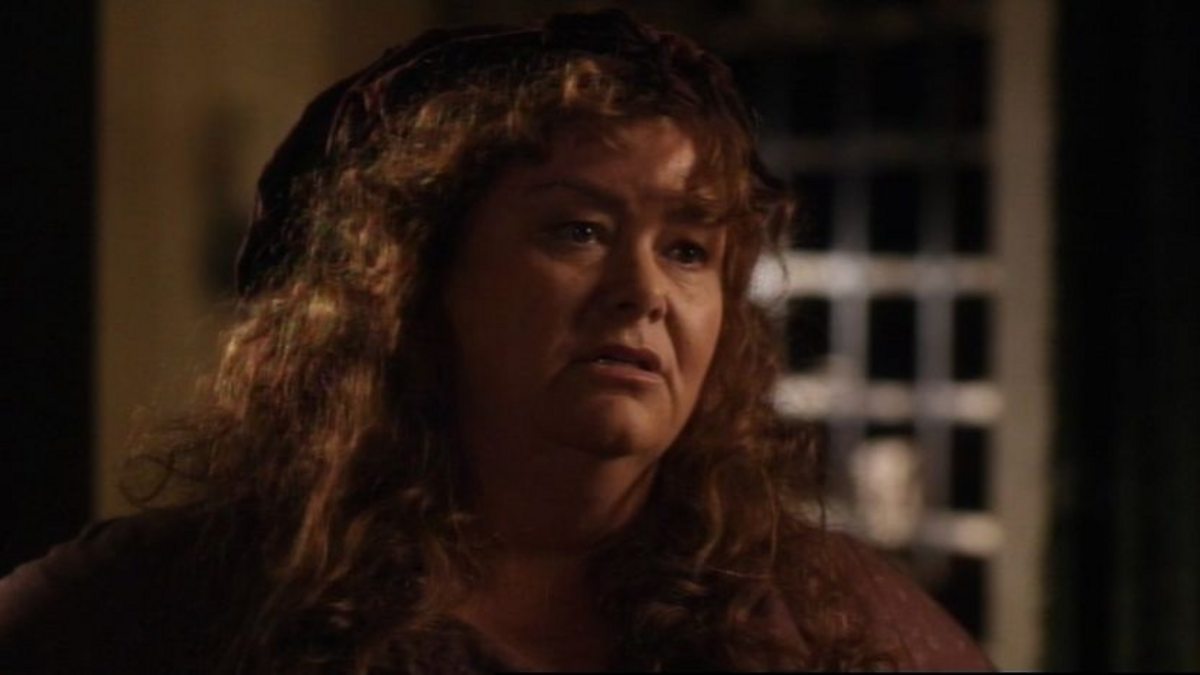 Minnie is given the third degree by Alf's mother, the newly-returned Caroline Arless - and Dorcas has to step in to defend her.