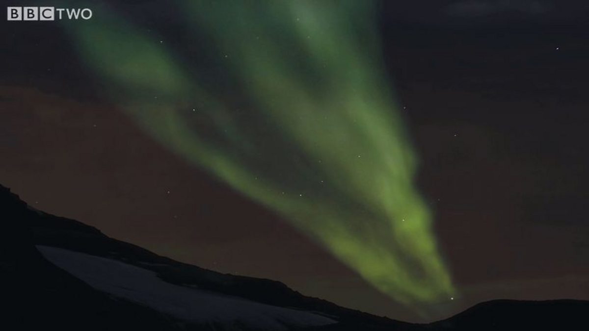 Bruce witnesses the aurora borealis, or northern lights.
